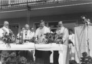 Abstract: Meran - Seraphisches Liebeswerk - Festakt anläßlich mehrerer Jubiläen und der Fertigstellung neuer Gebäudeteile. Eucharistiefeier. V.l.n.r. Kapuziner P. Eugen, P. Raphael Wieser, Diözesanbischof Wilhelm Egger, Provinzial Anton Ellemunter und Direktor P. Paul Hofer