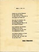 Abstract: Pieghevole / Invito a una festa per il 50° compleanno. (non sicuro!) Sulla parte anteriore: poesia di Oskar Blumenthal (per il 50° compleanno). Interno e retro in bianco. Datato 13 marzo 1902.