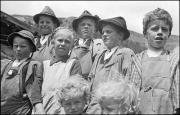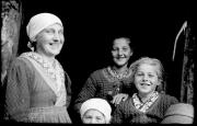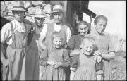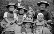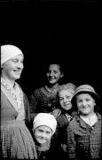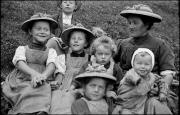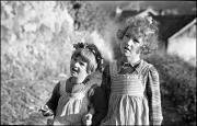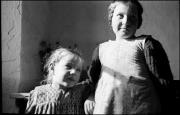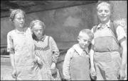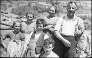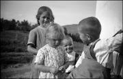 Abstract: "Kinder vom Hof Langweber der Fam. Savoi" Abtei, vier Kinder, zwei Mädchen mit Zöpfen und Kleiderschürzen, zwei Buben mit Schürzen
