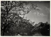 Abstract: Blühender Obstbaum in der Kaiserau (wohl gegen Abend), mit Blick auf Schloß Sigmundskron.