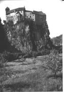 Abstract: Frühlingsmotiv mit blühenden Obstbäumen gegen Schloß Runkelstein (Gem. Ritten).