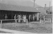 Abstract: Meran - Pferderennen : Bauerngaloppreiten auf dem Sportplatz Untermais. Szene am Rande des Rennens. Gruppenbild.