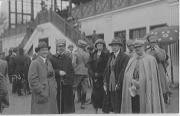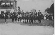 Abstract: Postkarte - Sport - Meran - Pferderennen : Offiziers - und Herrenreiten auf dem Sportplatz Untermais, Ostern 1923. Gruppenbild. Oberst v. Strobel , der Präsident des Sportvereins, in Zivil.