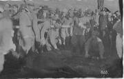 Abstract: Postkarte - Sport - Meran - Pferderennen : Offiziers - und Herrenreiten auf dem Sportplatz Untermais, 27. 4. 1924. Szene abseits des Rennens. Ein verendendes Pferd.