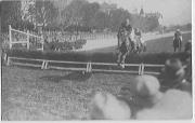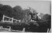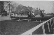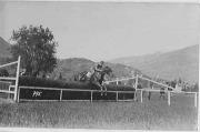 Abstract: Postkarte - Sport - Meran - Pferdesport : Pferderennen auf dem Sportplatz Untermais. Capt. Ferighi beim Hürdensprung.