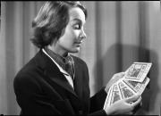 Abstract: Die amerikanischen Film Schauspielerin Galina Verbeck mit Losen der Meraner Lotterie (Pferderennen)