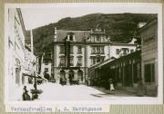 Abstract: Meran - Die Marktgasse (heute Sparkassenstraße) mit der Markthalle