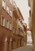 Abstract: Meran - Laubengasse - V.l.n.r. die Häuser der Familien Tirelli, Stanzel und Kiem (Leimstädtner). Für etwaige Reproduktionen siehe Feld Erwerbung/Rechte