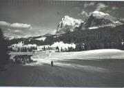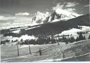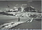 Abstract: Skipisten beim Almgasthof Sonne, gegen die veschneite Seiser Alm und die Langkofelgruppe.