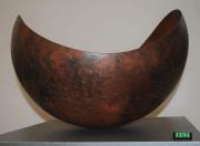 Abstract: Große bauchige Schale aus Prettauer Zementkupfer gefertigt vom Südtiroler Künstler Laurenz Stockner. Sie ist an den Schmalseiten hochgezogen und steht auf einem Punkt; Signatur LAURENZ P.K. 2015.