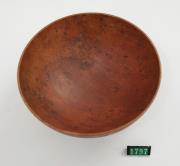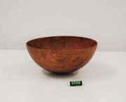 Abstract: Runde Schale aus Prettauer Zementkupfer, gefertigt vom Südtiroler Künstler Laurenz Stockner, rötlicher Farbton innen und außen, steht auf einem Punkt, dort Signatur: LAURENZ P.K.