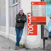 Abstract: 700 Jahre Meran: zehnte Plakatserie aufgeklebt. Poster Nicola Morandini fotografiert von Andreas Marini
