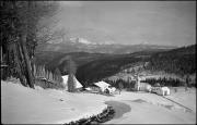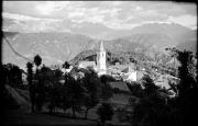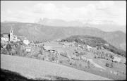 Abstract: Moarleitenhof, Joas (in der Bildmitte) und Kirche in Wielenberg (Percha) im Jahr 1935, aufgenommen Richtung Südosten, im Hintergrund die Olanger Dolomiten mit Hochalpenkopf und Maurerkopf.