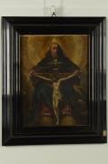 Abstract: Gnadenstuhl, Letztes Abendmahl, Abraham opfert Isaak, unvollendet bez. auf der Rückseite Entwurf für eine Kanontafel