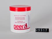 Abstract: Weiße Salbendose mit rotem Schraubverschluss aus Polypropylen (PP), mit Standring. Bodenprägung: 100, 125ml und Receyclingsymbol für PP. Enthält 100g Rheumasalbe.