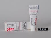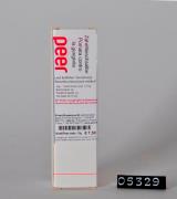 Abstract: Brauner, zylindrischer Flaschenkörper, verstärkter Mündungsrand mit Schraubgewinde. Schwarzer Kunststoffverschluss mit Spatel aus Poliethylen. Bodenrand geriffelt. Mit Prägung der Volumenangabe 10ml. Zum Pinseln bei Zahnfleischentzündungen.