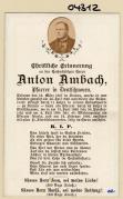 Abstract: Sterbebild von Anton Ambach, Pfarrer in Deutschnofen Geb. am 19.03.1807 in Salurn, gest. am 12.02.1886 mit Foto