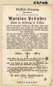 Abstract: Sterbebild von Mathias Prünster, Bauer zu Mitteregg in Riffian Geb. am 21.11.1805, gest. am 28.03.1881 ohne Foto