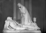 Abstract: La lastra di vetro rappresenta una scultura di marmo che raffigura la Madonna con il Cristo morto (Pietà). Fa parte di una tomba su un cimitero a Innsbruck e fu eseguita da Edmund Klotz nell'anno 1900.