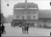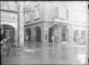 Abstract: Meran - Untermais - Romstraße - Die Gschliesser- Apotheke, darüber die Zentrale des lokalen Fascio