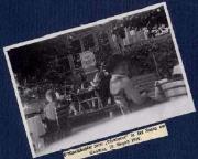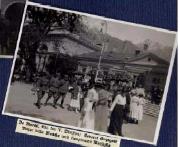 Abstract: Meran - Pfarrplatz - Kriegs- Dank- Verlöbnisprozession ('Maiprozession') - Die St. Michaelsbundknaben mit Kapuzinerpater Vigil Angerer vor der Barbarakapelle
