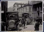 Abstract: Meran - Habsburgerstraße, heute Freiheitsstraße - Die städtische freiwillige Feuerwehr und die italienische Bereitschaft rücken am Ostersonntag mittag mit leichten ital. Militärautos zu einem Großbrand in St. Leonhard in Passeier aus