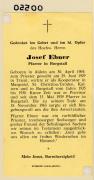 Abstract: Sterbebild von Josef Ebner, Pfarrer in Burgstall Geb. am 30.04.1904 in Aldein, gest. am 18.11.1963 mit Foto