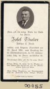 Abstract: Sterbebild Josef Thaler, Besitzer in Pausa Gest. am 29.04.1941 im Alter von 62 Jahren mit Foto
