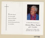 Abstract: Sterbebild Aloisia Wwe. Furini geb. Gurndin Geb. am 16.03.1923, gest. am 22.04.2007