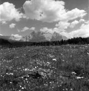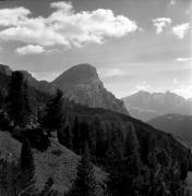 Abstract: Blick zum Sassongher von Grödner Joch aus.