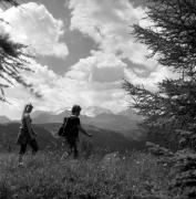 Abstract: Zwei Mädchen beim Spazieren am Grödner Joch.