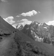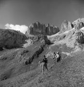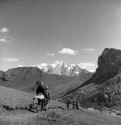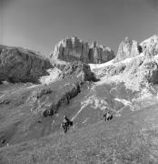 Abstract: Wanderer auf den Bindelweg in der Nähe der Marmolada.