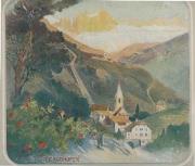 Abstract: Meran - von Tappeinerweg aus gesehen - nach einem Aquarell von Tony Grubhofer