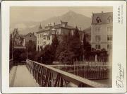 Abstract: Meran : Ehem. Pension Hassfurter, ursprünglich Getreidekasten. Winterpromenade. Gehört zum Inhalt der Moeser - Kassette.