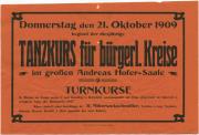 Abstract: Meran - Veranstaltung - Werbung - Tanzkurs für bürgerl. Kreise, Turnkurse