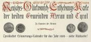 1909 Neujahrs-Glückwunsch-Enthebungs-Karte der beiden Gemeinden Meran und Tyrol zu Gunsten der Armen Tyrolischer Erinnerungskalender für das Jahr 1909 - siehe Rückseite!