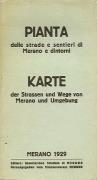 Abstract: Pianta delle strade e sentieri di Merano e dintorni in scala 1: 31.250". Prezzo: 2 Lire. Editore: Associazione Stradale di Merano.