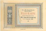 Abstract: Biglietto d'invito alla 19a Assemblea generale del Club alpino tedesco-austriaco - Sezione di Merano. Testo: "D. u. Ö. Alpen-Verein (Sezione di Merano) Fest - Karte für Theilnehmer an der XIX. Generalversammlung 3 - 5 settembre 1892". Motivo: testo incorniciato da decorazioni.
