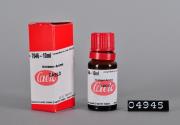 Abstract: Roter etikettierter Faltkarton der Firma Caelo, innen braunes Glasfläschchen, ebenfalls etikettiert, mit rotem Schraubverschluss, aufgebrochener Sicherheitsring. Mit Etikette der Firma Caesar & Loretz, Hilden. (verwendbar bis Ende: 09/2008). Chargenetikett der Stadtapotheke Peer vom 29.10.2007. Mit Inhalt.