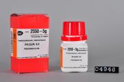 Abstract: Roter etikettierter Faltkarton der Firma Caesar & Loretz (Caelo) aus D-40721 Hilden. Innen weißer, am Boden quadratischer Kunststoffbehälter aus Polyethylen (PE) mit rotem Schraubverschluss, ebenfalls etikettiert, aufgebrochener Sicherheitsring. Innen mit Analysenzertifikat der Firma Caelo. Verwendbar bis Ende: 06/2010. Rückseite Chargenetikett der Stadtapotheke Peer vom 03.11.2008