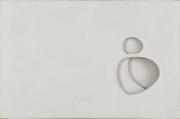 Abstract: Tre tele con ritagli tondeggianti, sovrapposte, dipinte di acrilico bianco.