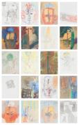 Abstract: Serie composta da 20 disegni acquerellati su carta. Su ciascun foglio un viso o una figura astratta colorata.