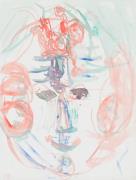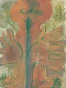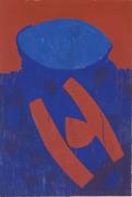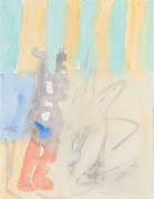 Abstract: Dipinto astratto a tempera su carta, montato su tela. Sopra il dipinto, a penna a sfera, la scritta: "W 87 / TATA", ed una linea ondulata entro un cerchio.