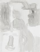 Abstract: Dipinto astratto a smalto bianco e grigio su tela. Nella parte alta la firma dell'artista.