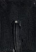 Abstract: Dipinto ad acrilico su cartone con segni grafici su sfondo nero.