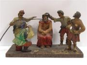Abstract: Scultura Via Crucis in pino cembro, dipinto e tinto. Raffigurata: l'incoronazione di spine di Cristo - un soldato e tre ladroni, che dotano il Cristo vestito di porpora di una corona di spine e una canna come scettro.