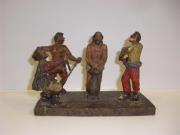Abstract: Scultura Via Crucis in pino cembro, dipinto e tinto. Raffigurata: la flagellazione di Cristo - tre aguzzini, il Cristo flagellato.