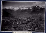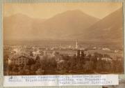 Abstract: Meran - Blick gegen Untermais - Im Vordergrund die Villa Bellevue (l.u.) und Schloß Maur. Rechts inmitten von Weinäckern das Reinthalerhaus, die spätere Blumauer Bierhalle