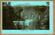 Abstract: Kolorierte Ansichtskarte - Trafoi- Hotel mit Trafoier Eiswand und Mataschspitzen