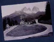 Abstract: Journalistenfahrt auf der Dolomitenstraße (im Bild auf dem Weg zum Pordoipaß bei Canazei ?)